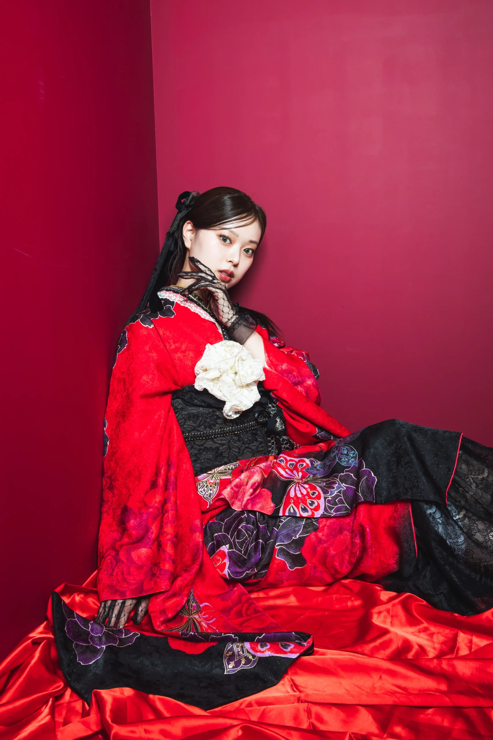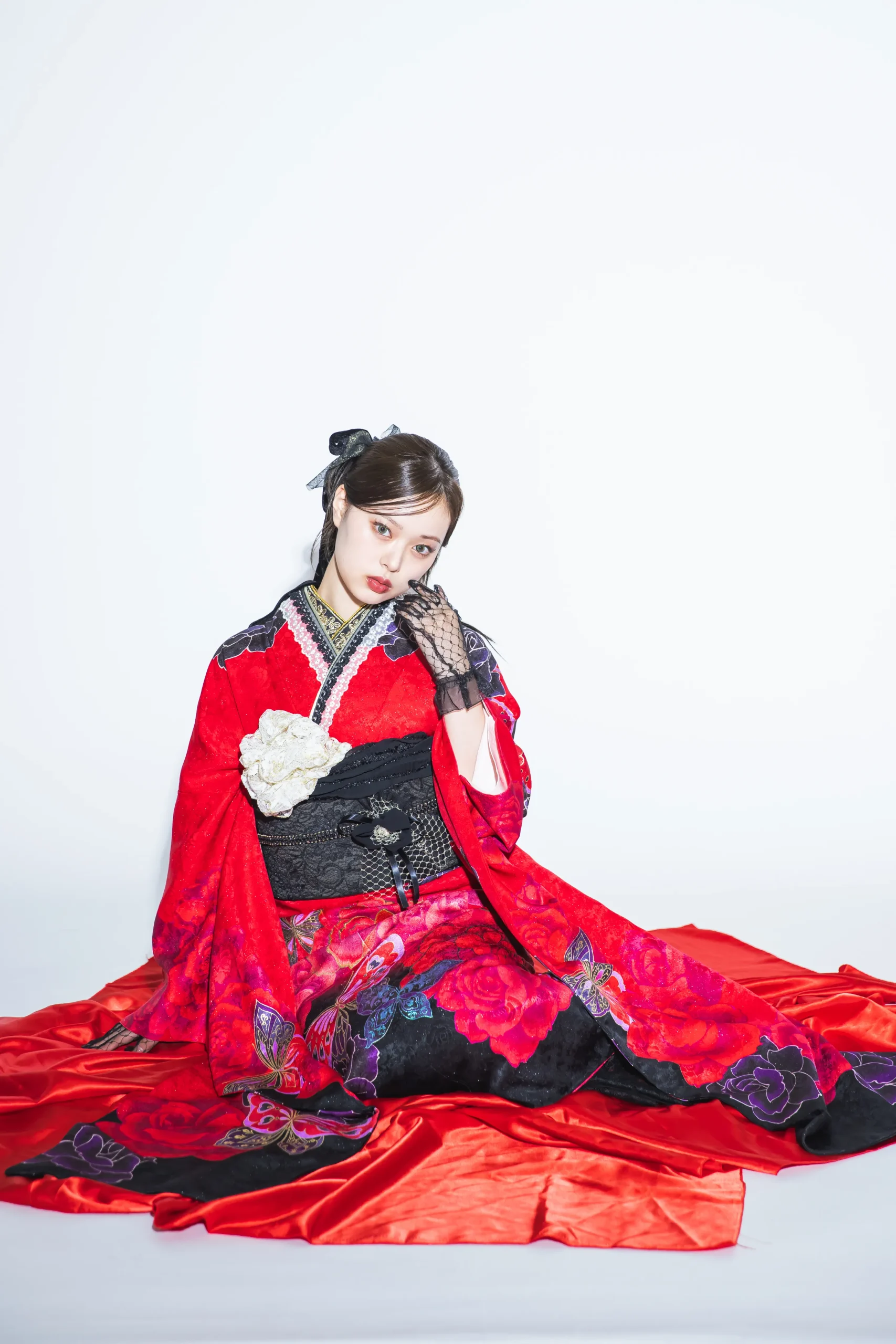 真紅の花が艶やかに咲き誇る、華やかでドラマティックな振袖。 赤×黒のコントラストに、紫の薔薇と蝶が舞うデザインは存在感抜群。 甘さの中にクールさを感じるモードな雰囲気で、誰ともかぶらない個性派スタイルを叶えます。 ブーツやレース小物を合わせれば、トレンドの“バレエコア”風にもアレンジ可能。 成人式でもひときわ目を惹く、おしゃれ女子必見の一着です。 【PLUM】なら、自分らしさを大切にした振袖コーデをご提案します。