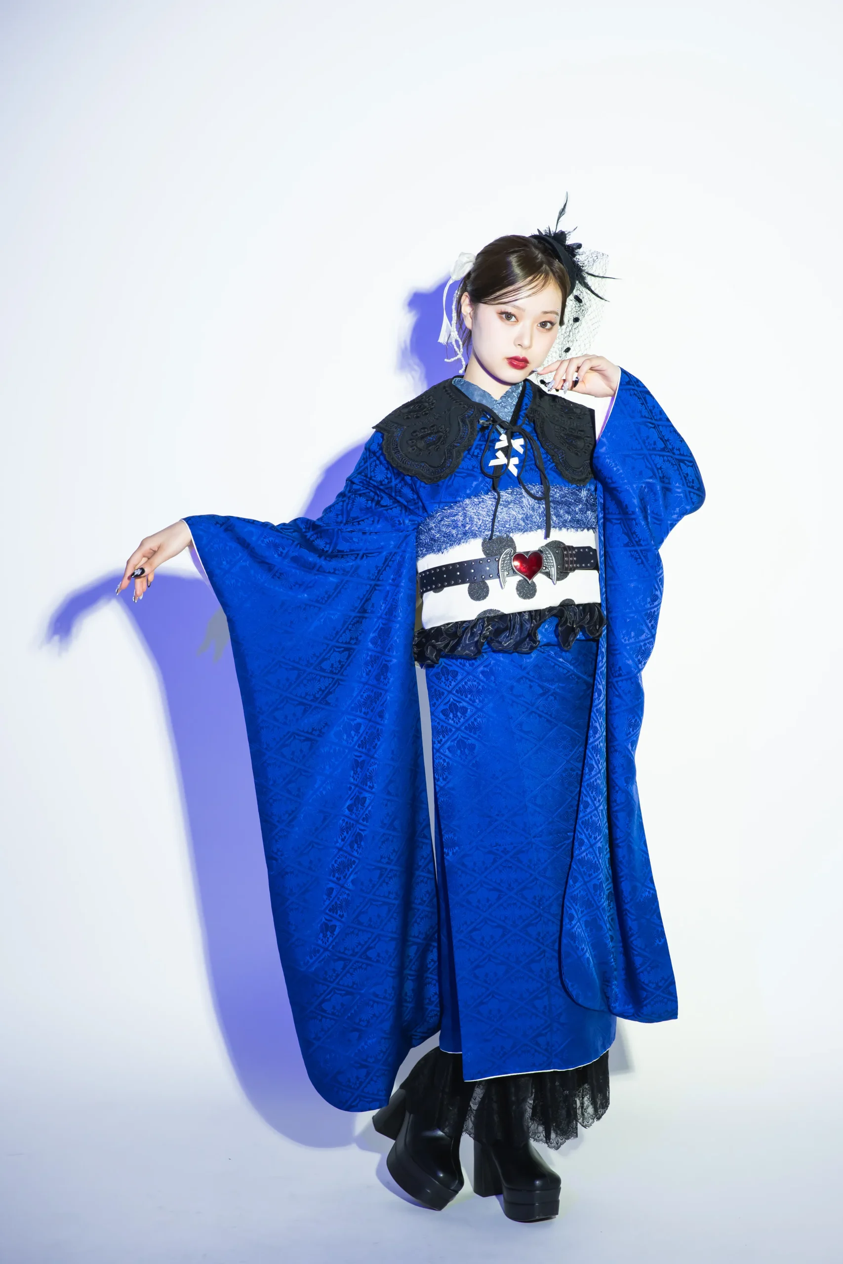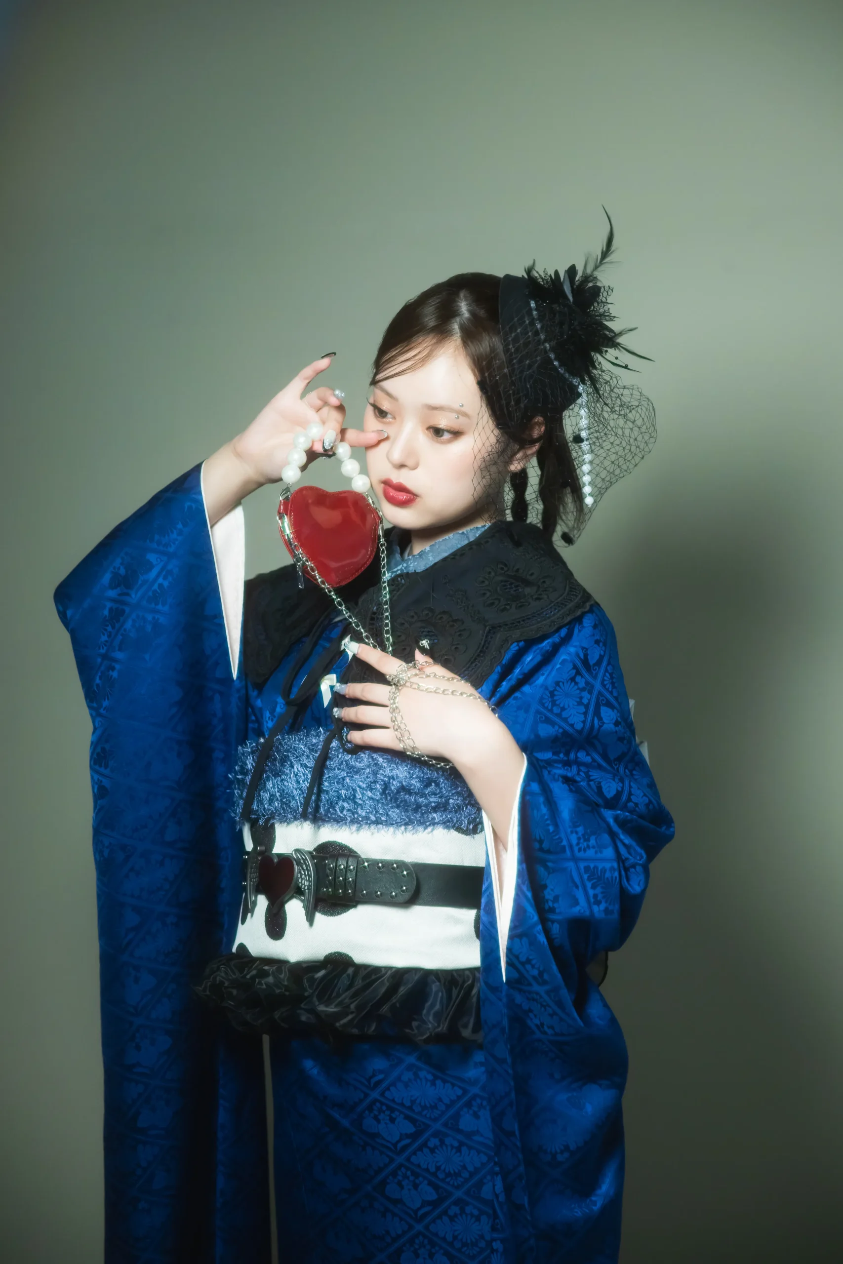 鮮やかなロイヤルブルーが目を惹く、個性派モード振袖。 レースやハートモチーフ、ベルト帯などのディテールが映える、他にはないデザインです。 クラシカルな襟元とモダンなシルエットが絶妙にマッチし、まるでファッション誌の1ページのような存在感。 トレンドの“バレエコア”“Y2Kガーリー”にもぴったりで、周りと差をつけたいおしゃれ女子におすすめ。 【PLUM】では、自分らしさを最大限に表現できる振袖スタイルをご提案しています。