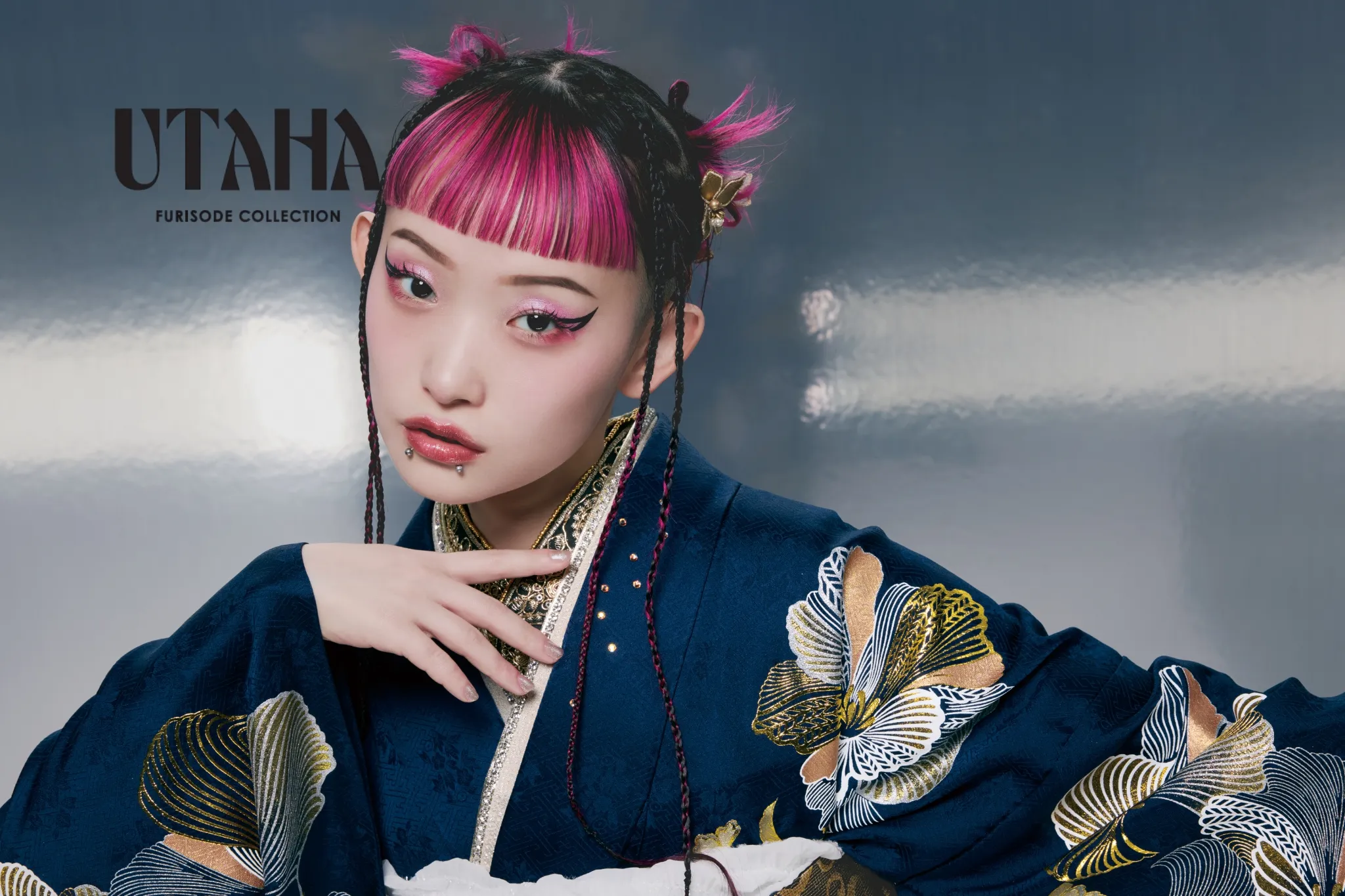 深いネイビーの地に、金彩とシルバーがきらめく大輪の花が舞う、重厚感とモード感を兼ね備えた振袖。黒に近い濃紺のベースが花々の存在感を引き立て、エレガントかつ力強い印象を演出します。アンティーク調の帯は重厚なゴールド系の唐草模様で、クラシックで高級感あるスタイルに。細部までこだわりが詰まったデザインは、大人っぽく魅せたい方にぴったりです。 着用モデルは、水曜日のカンパネラの**詩羽さん**。静かな強さと自分らしさを持つ彼女の雰囲気と完璧にマッチした、唯一無二の存在感を放つ一着です。